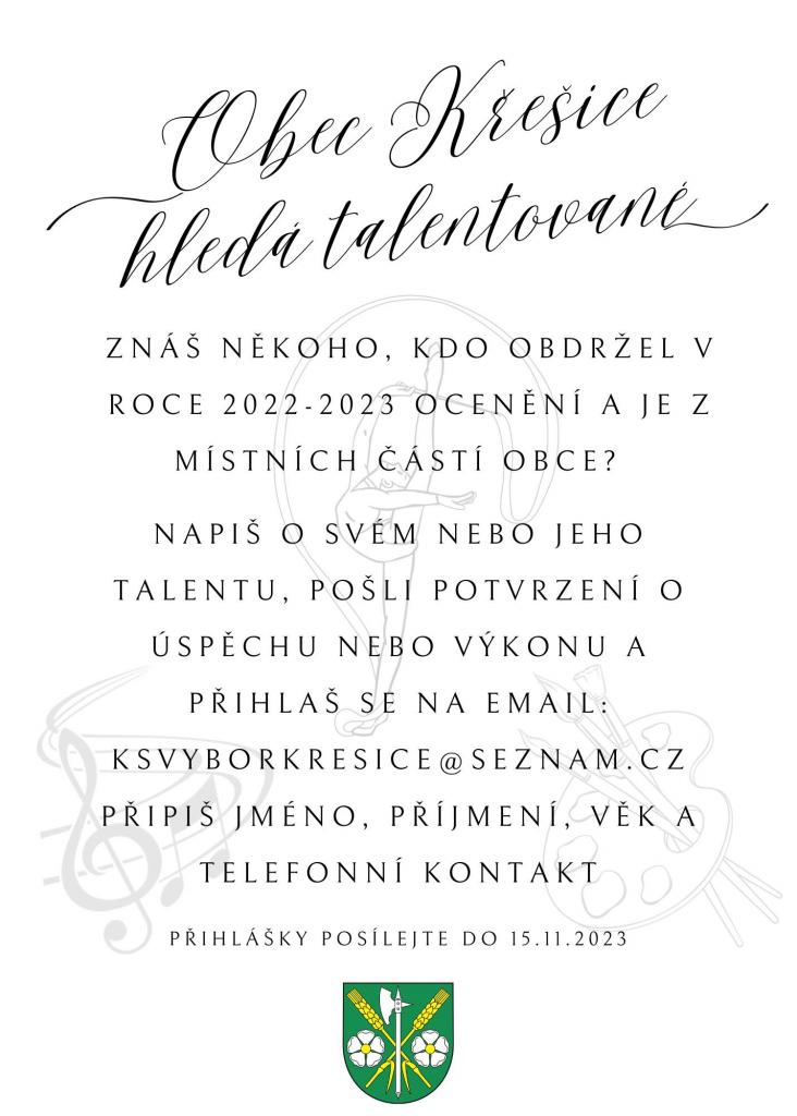 Napiš o svém nebo jeho talentu, pošli potvrzení o svém úspěchu nebo výkonu a přihlaš se na email: ksvyborkresice@seznam.cz.